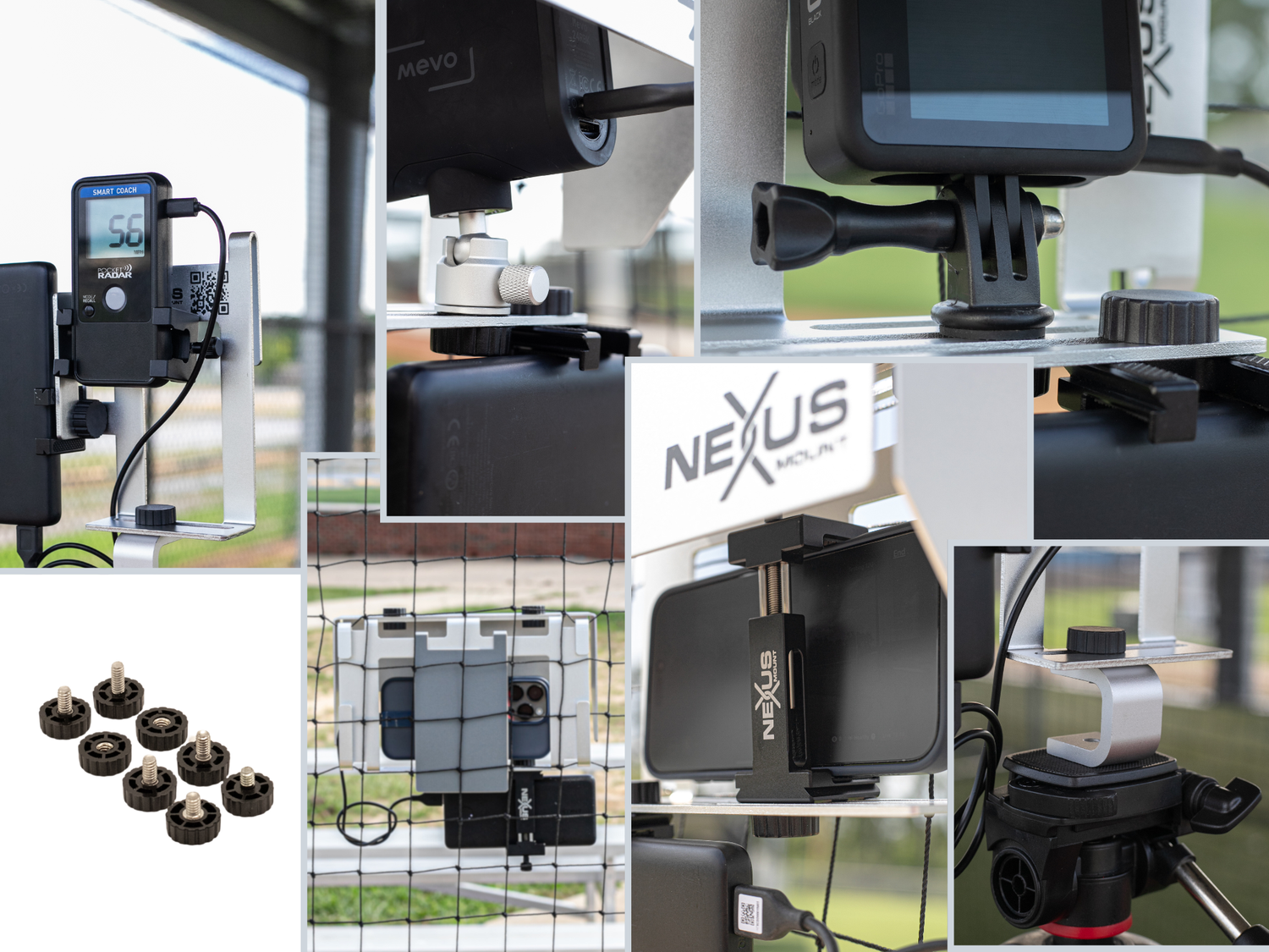Aluminum mounting kits designed to easily and securely mount your camera along with a battery pack to livestream games or record training sessions. The compact design is lightweight for ease of use and portability.